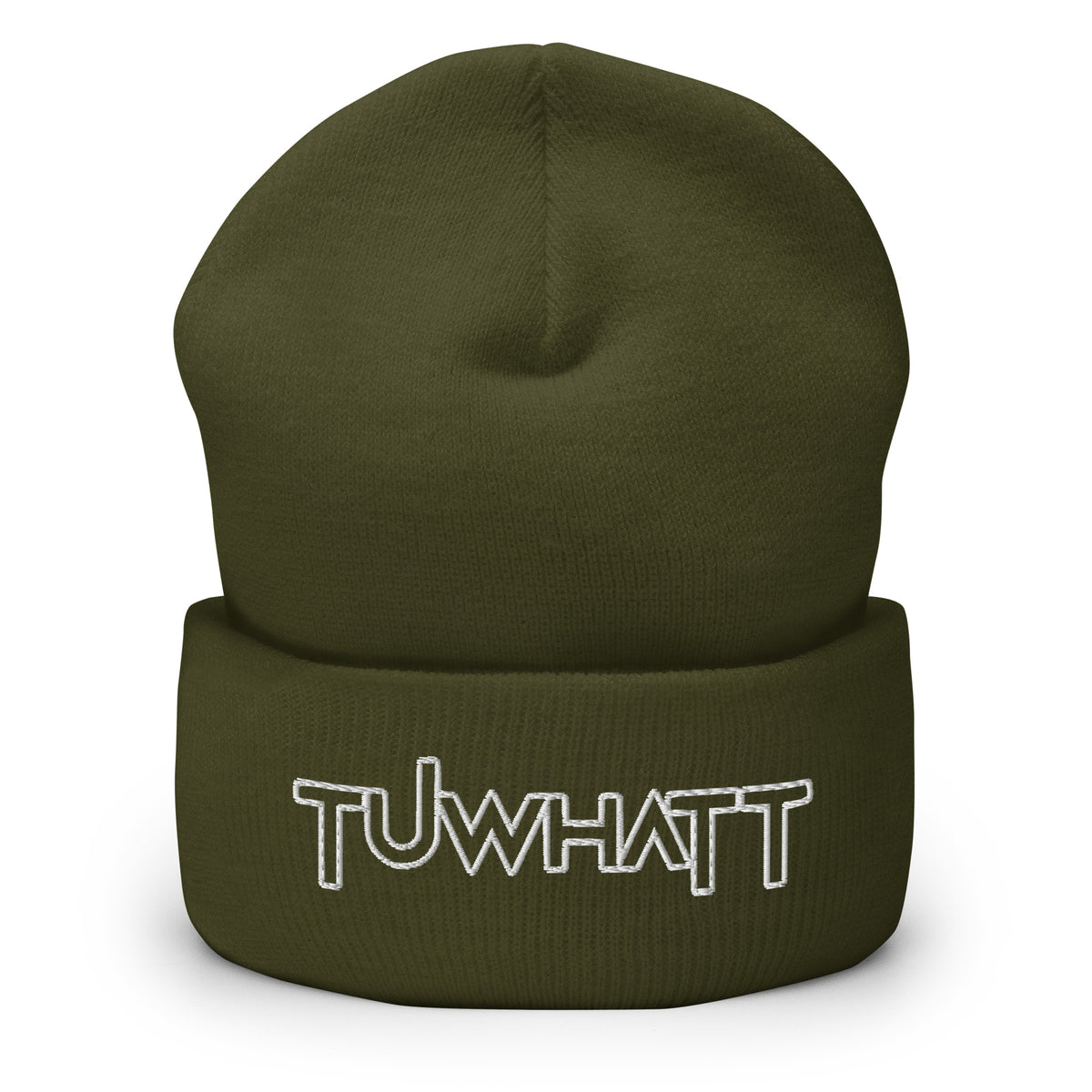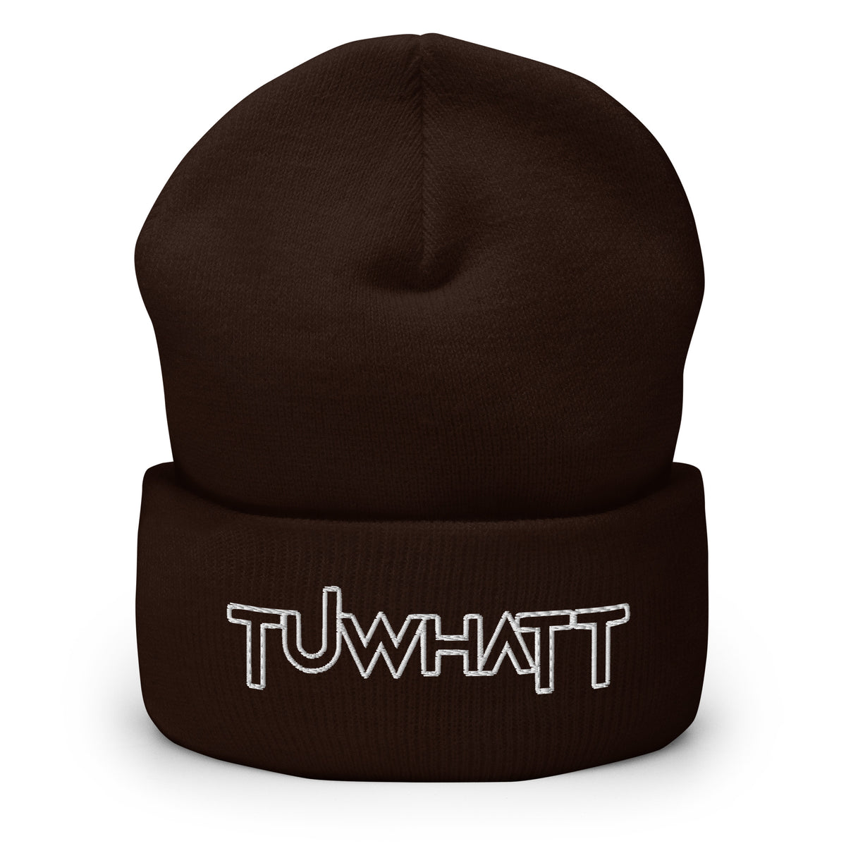 Product mockup Unisex knitted beanie hat with embroidered TuWhatt logo available in various colors
