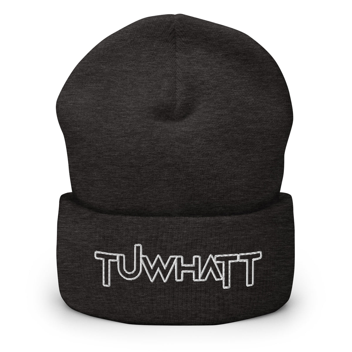 Unisex knitted beanie hat with embroidered TuWhatt logo available in various colors